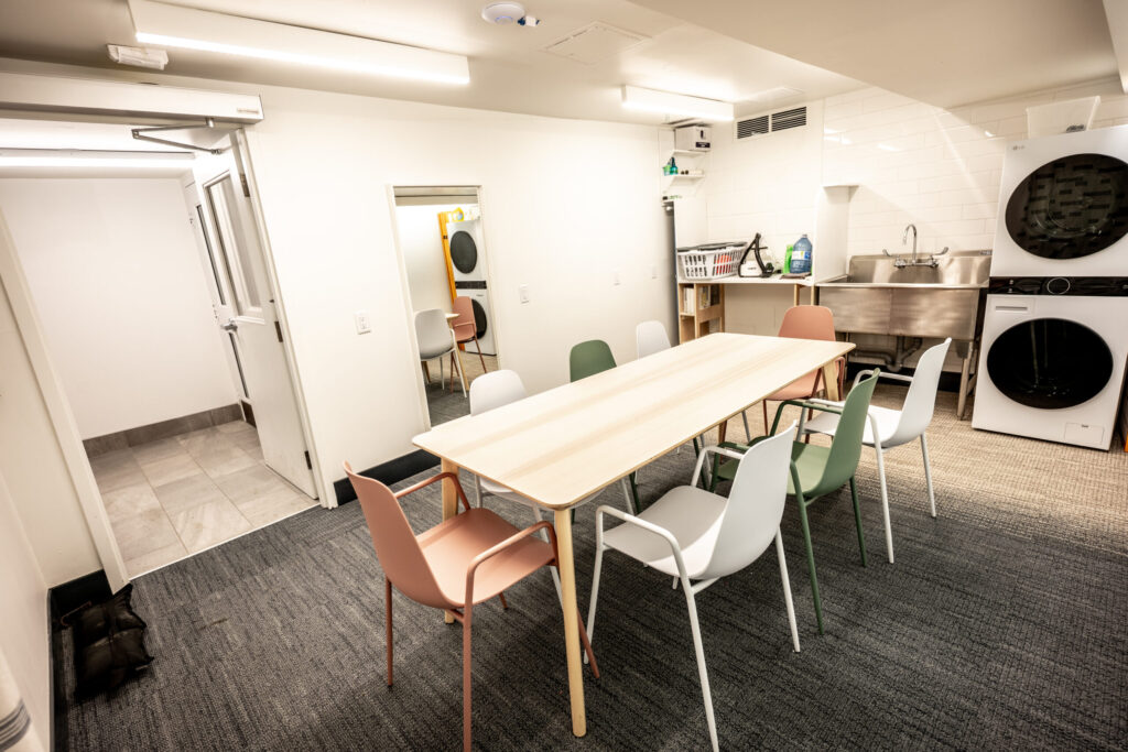 The Salon provides the perfect setting for productive brainstorming sessions and creative collaborations. Centralized around an 8-seater table and tucked into a private corner, this inviting space fosters a sense of intimacy and focused conversation. Equipped with a washer/dryer, it can also be used as a wardrobe room for theatrical performances.