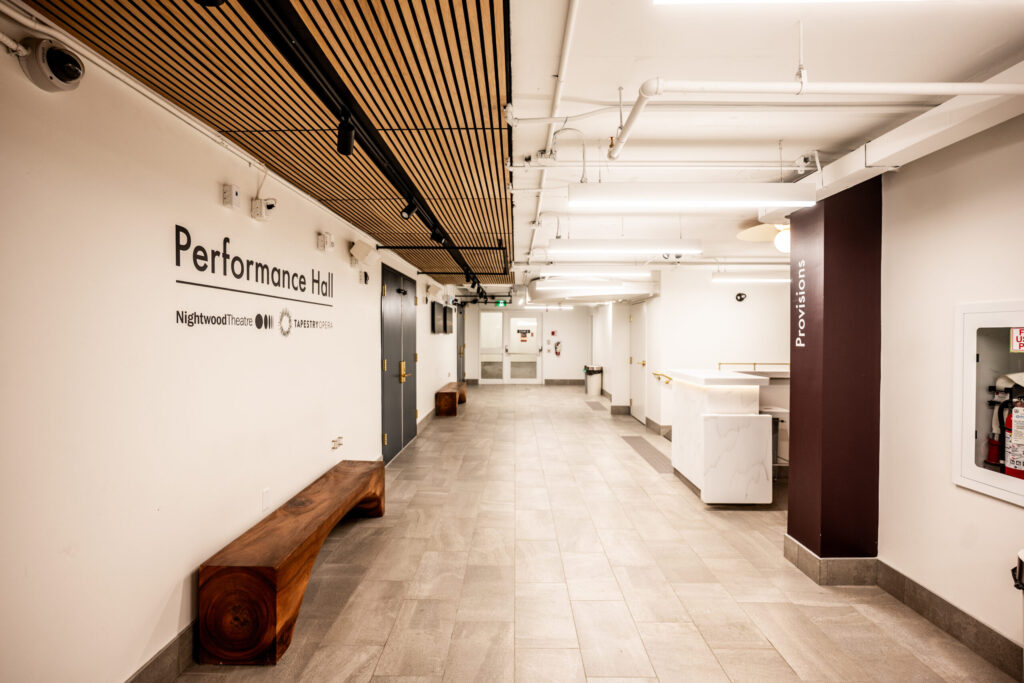 Tucked away beyond the Stanley Shalom Zielony Green Room, you’ll find the sleek and modern offices of Nightwood Theatre and Tapestry Opera. This open-concept layout provides a dynamic and inspiring workspace, offering a much-needed home base for these innovative organizations to flourish.